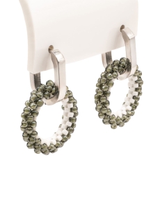 Kolczyki handmade z koralików Toho w szklistym, lodowym odcieniu. Subtelna elegancja zamknięta w minimalistycznym okręgu.