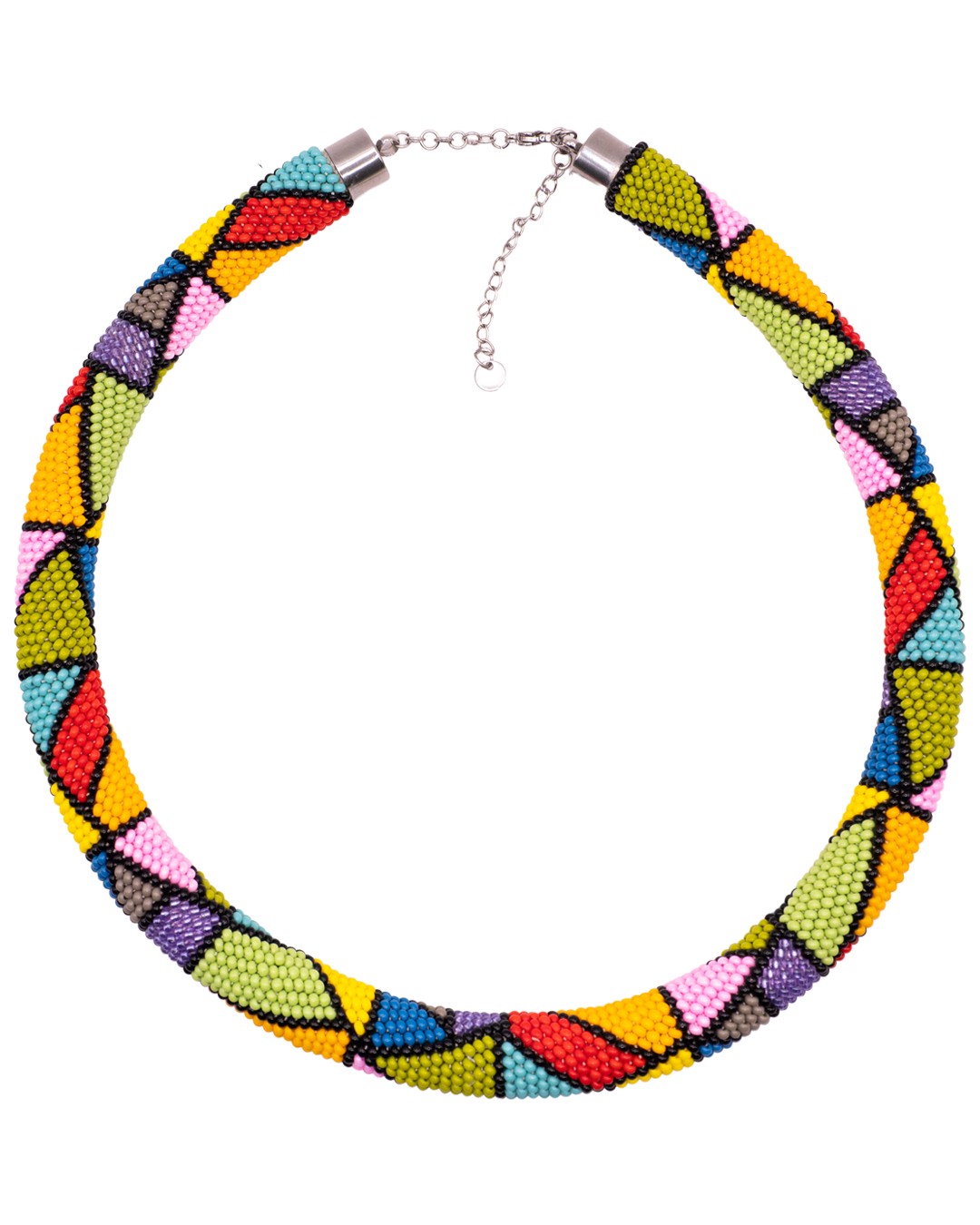Mira — ręcznie pleciony naszyjnik etno z wysokiej jakości koralików Preciosa. Kolorowy, geometryczny wzór i regulowane zapięcie — lekki akcent do każdej stylizacji.
