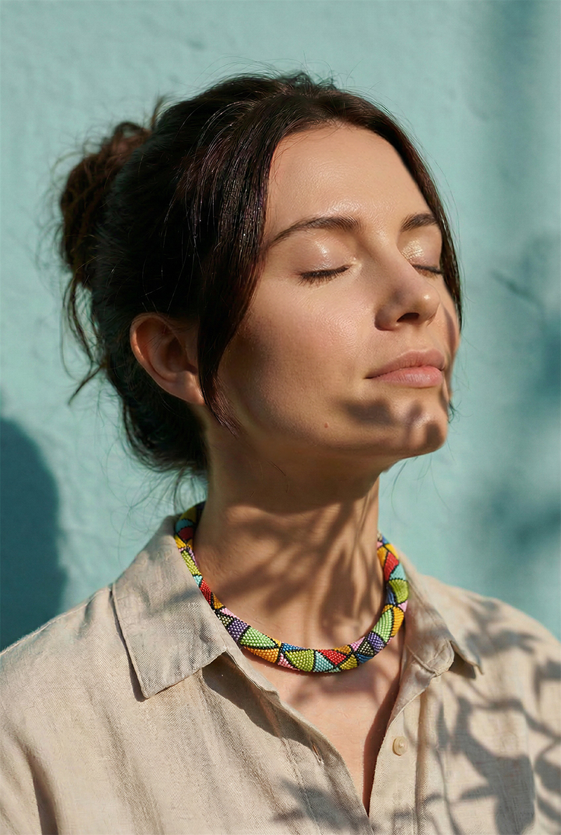 Każdy egzemplarz powstaje ręcznie — drobne różnice podkreślają jego unikatowość. Dzięki zastosowaniu koralików Preciosa biżuteria ma piękny połysk i dłużej zachowuje intensywność barw. Regulowane zapięcie pozwala dopasować długość do dekoltu, a lekka konstrukcja sprawia, że Mira jest komfortowa przez cały dzień.